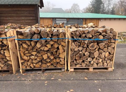 Štípané palivové dřevo buk, dub na paletě 1 PRM.